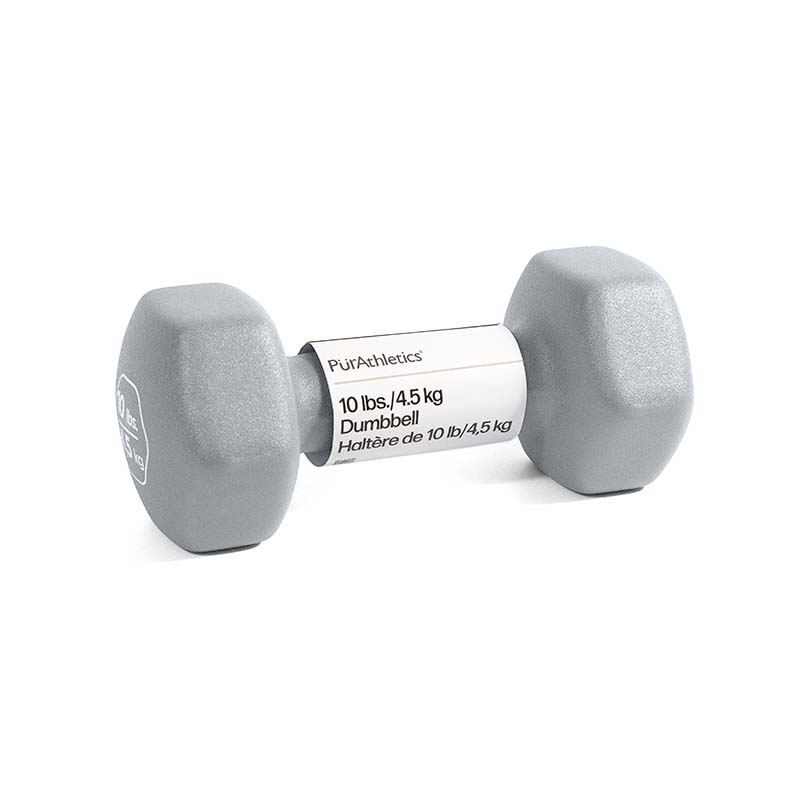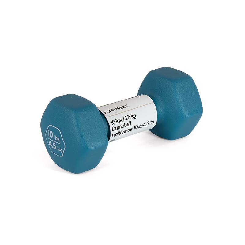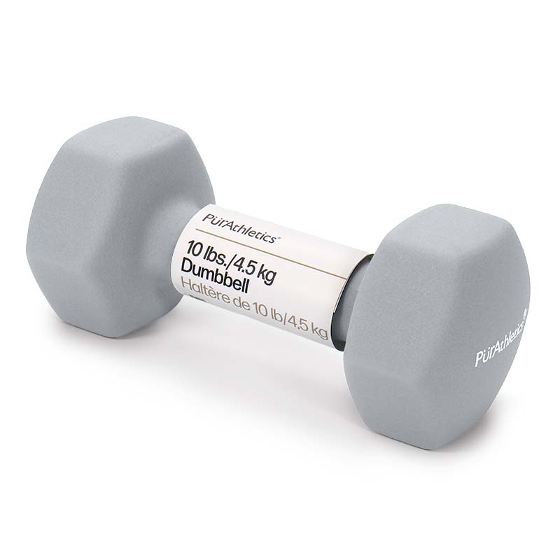 Durable and dependable. The PurAthletics 10 lb Dumbbell features a non-slip neoprene grip and a stable hex designthat stays put between sets. Sold individually.
