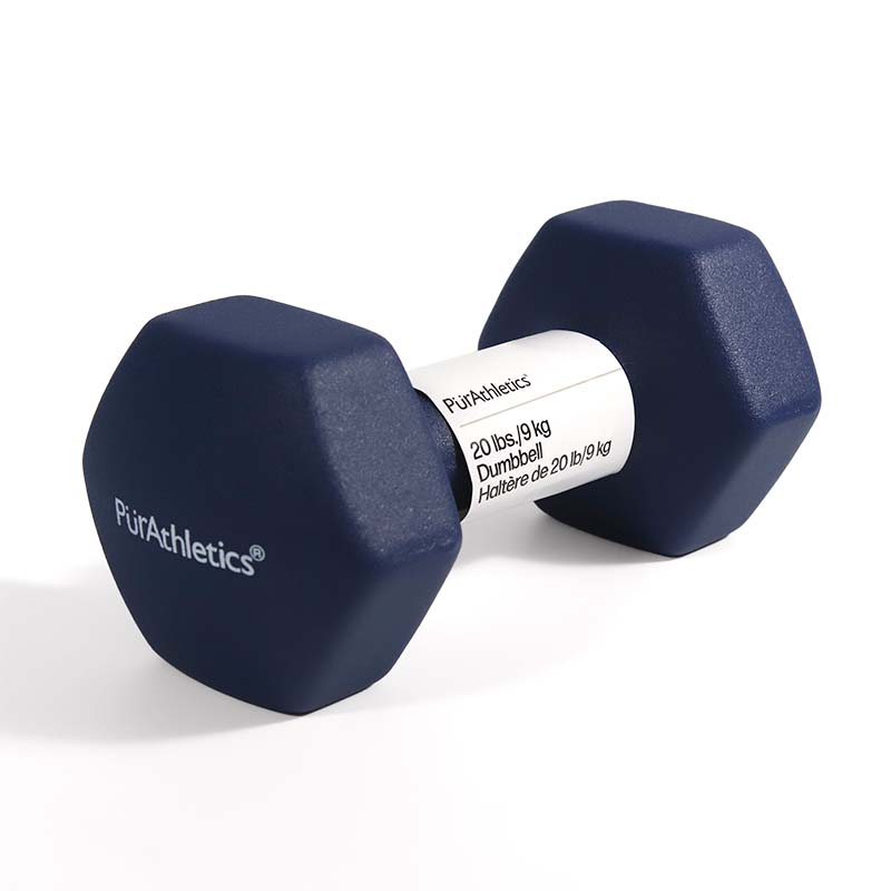 Take your training up a notch with the PurAthletics 20 lb Dumbbell. Designed for performance, its textured neoprene coating ensures control through every rep, and the hex shape keeps it steady when you set it down. Sold individually.