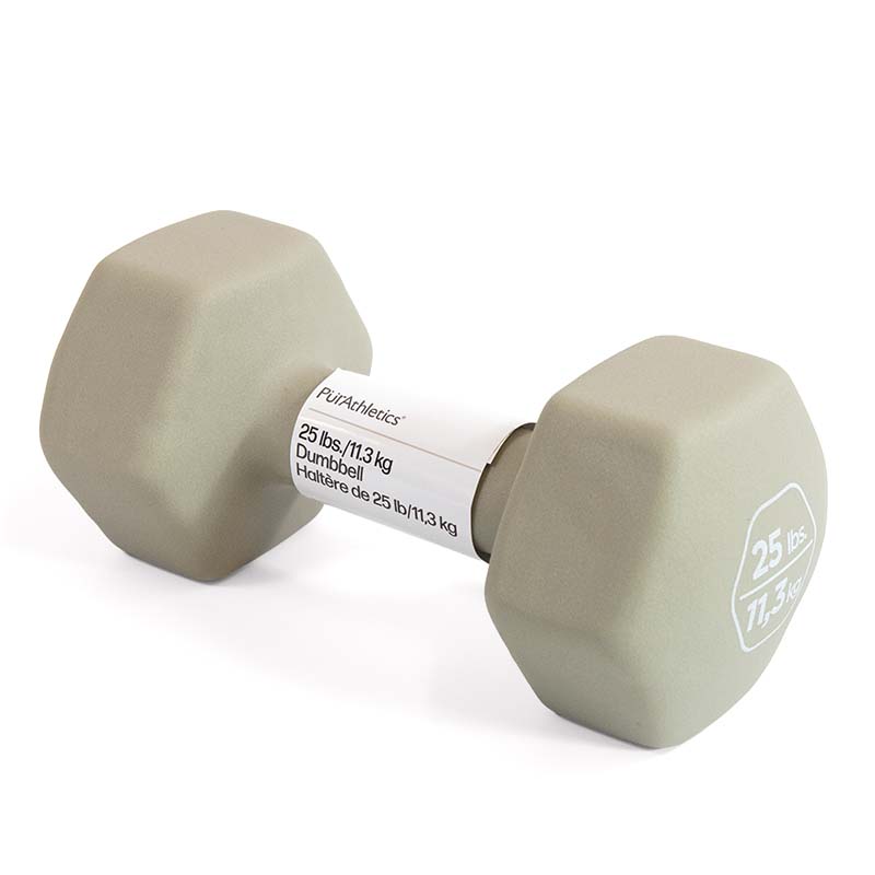 Push your limits with the PurAthletics 25 lb Dumbbell. Engineered for lasting durability and comfort,it features a smooth neoprene coating for a confident hold and a hex shape that keeps your space neat and safe.Sold individually.