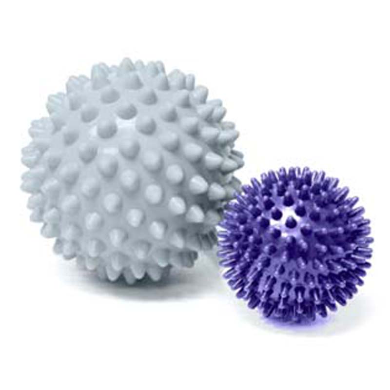 2 kinds of therapy balls for different functionality. Ball with longer nibs is great for small muscles including feet, hands and small areas that needs perking up. Bigger size ball with stubby nibs is for large muscles. Both textured balls offer immediate muscle relief from fatigue.