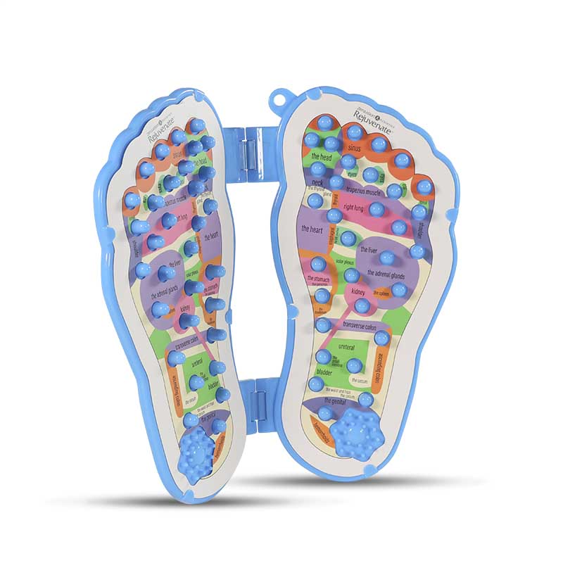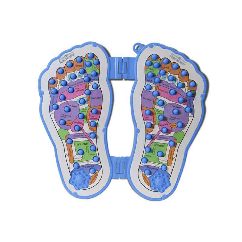 This reflexology foot massager helps improve circulation, reduces tension, stimulates muscles, mitigates pain from standing, walking and everyday activities. Other benefits include aiding the release of endorphins,lowering blood pressure, heart rate, improves balance, and mood boosting properties.